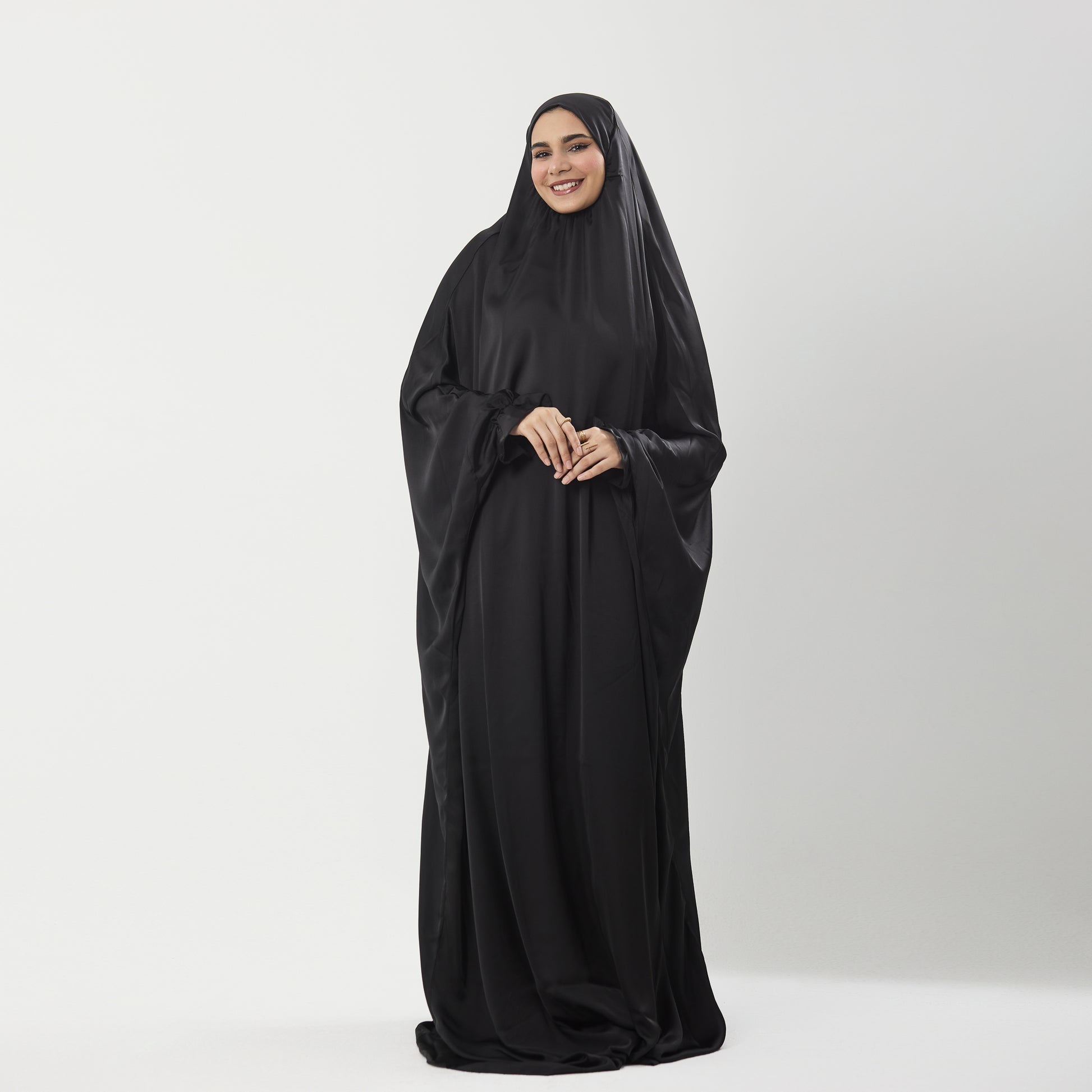 Discover confidence in this beautiful satin prayer dress, thoughtfully designed to support your spiritual journey. The luxurious satin fabric drapes gently while providing the modest coverage you deserve, allowing you to focus on what matters most. Each piece comes with a matching custom bag, perfect for keeping it protected and ready wherever you go.